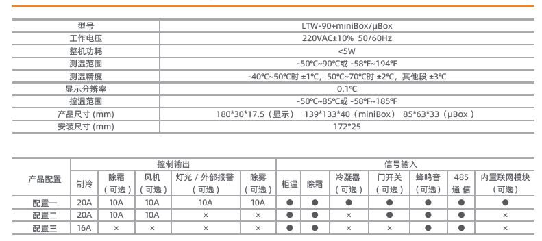 ● 多路控制輸出可進(jìn)行壓縮機(jī)、除霜、風(fēng)機(jī)、燈光/ 外部報(bào)警、除霧控制;