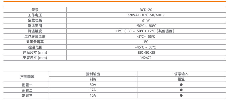 ● 1 路溫度傳感器用于柜溫測(cè)量; ● 1 路壓縮機(jī)控制功能; ● 4 種工作模式(冷藏、微凍、冷凍、速凍),按鍵切換; ● 溫度修正模式,控溫更精確; ● 壓縮機(jī)啟動(dòng)延時(shí)保護(hù)、傳感器故障代碼顯示等功能操作方便快捷。